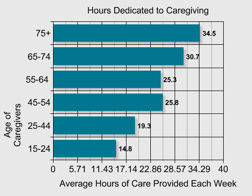This chart shows the average amount of hours of care giving aging parents require from their adult children.